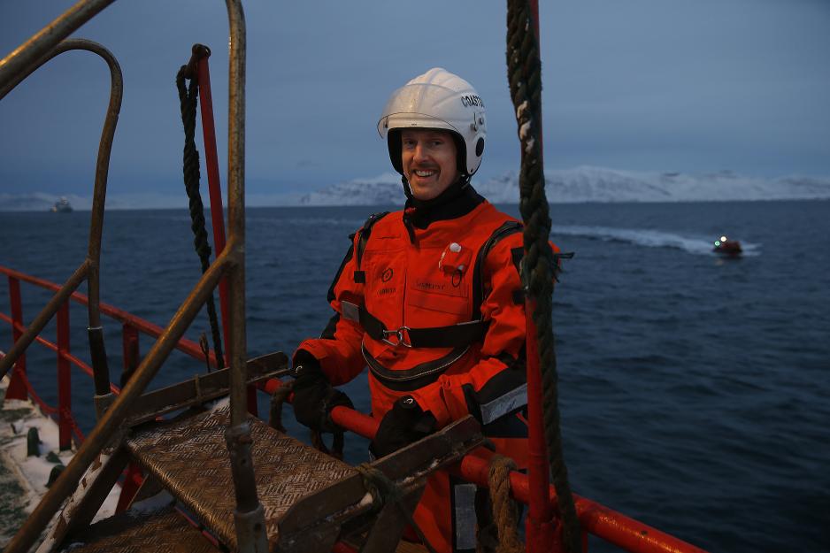 The Coast Guard vessel KV Svalbard conducting a fisheries inspection onboard the Russian fish processing vessel Arctic Princess in the Recherche Fjord off the coast of Svalbard in 2014. Photo: Torbjørn Kjosvold