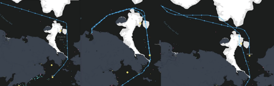 For much of their trip from China across the North Pacific the three vessels have been traveling at just 7-8 knots. At those speeds the convoy has at least 3-4 weeks to go to reach its destination taking it deeper into November, let alone leaving the Arctic after delivering the sanctioned cargo.