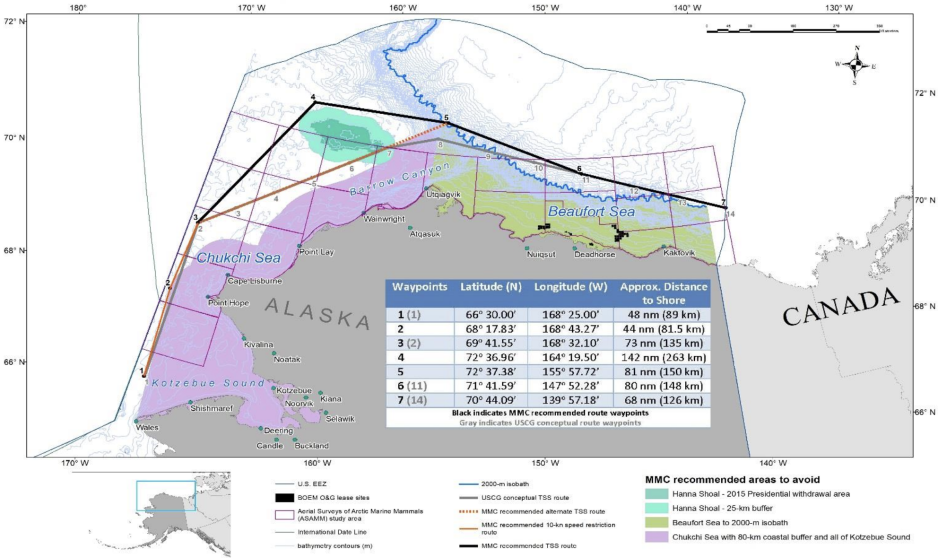The proposed shipping lane aims to minimize impacts of increased shipping activity on marine mammals and local indigenous communities relying on the marine environment. The effort is organized under the Alaskan Arctic Coast Port Access Route Study (AACPARS).