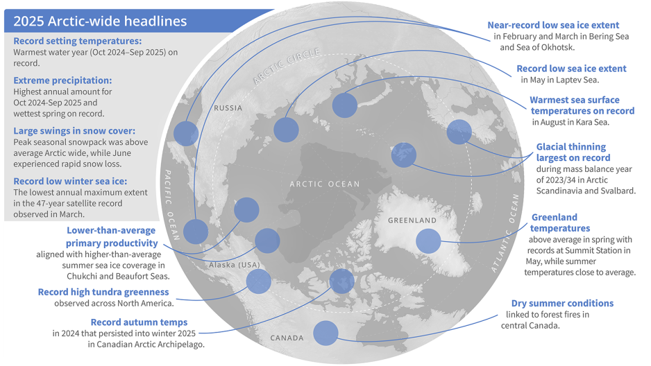 The headlines from the Arctic Report Card 2025. (Illustration: NOAA)