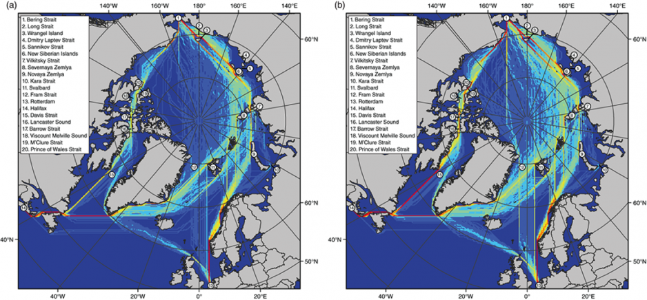 Their model shows a simulated future of sea ice extent based on climate models and then calculates the fastest routes through the Arctic Ocean. Based on their research the NSR is highly likely to remain the preferred Arctic shipping route, with only some outlier models predicting the NWP as a significant transport route.