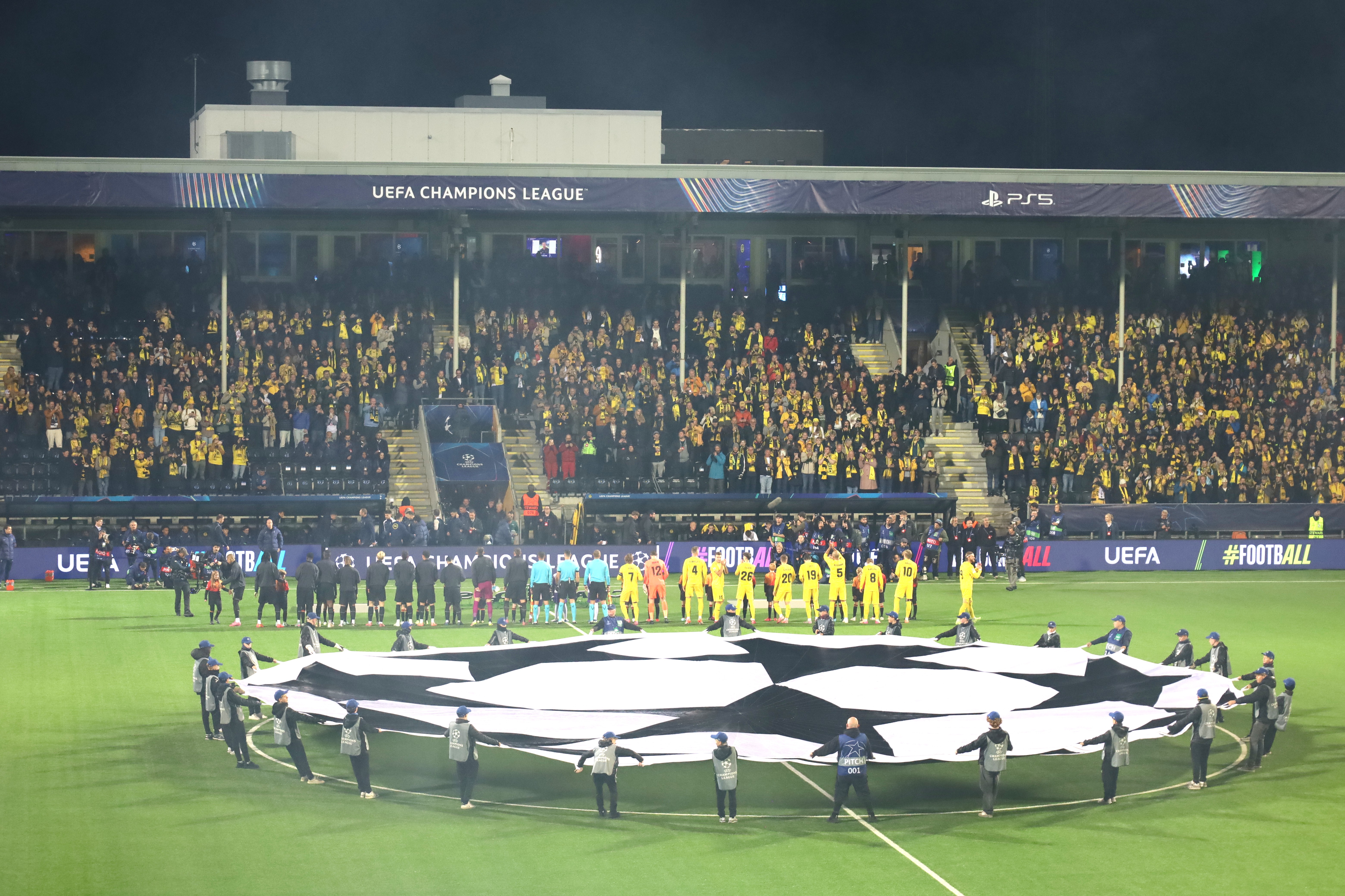 The UEFA Champions League hymn plays at the Aspmyra Stadium in Bodø, Northern Norway, as the first-ever match of the prestigious football tournament is about to start above the Arctic Circle.