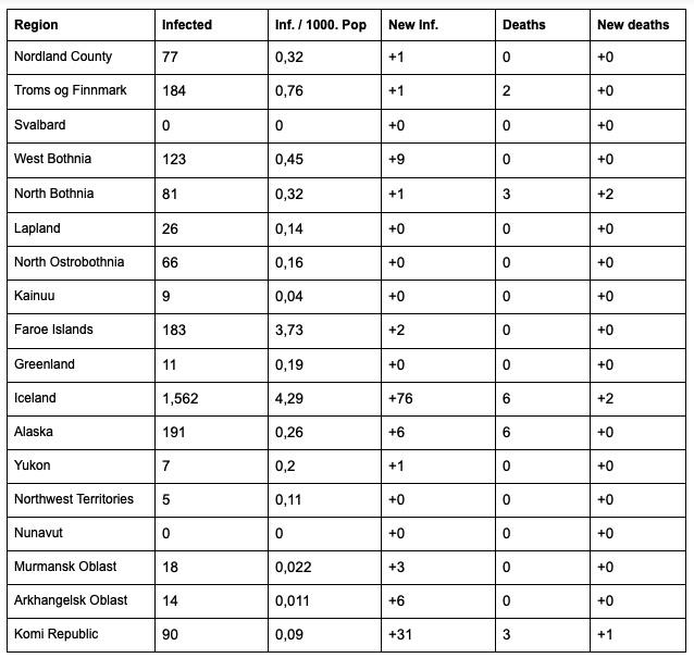 High North News will continue its mapping of the Corona virus in the Arctic after the Easter holidays.