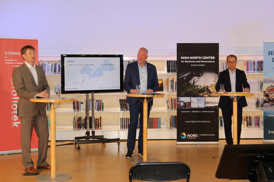 PhD Andrei Mineev, Assistant Professor Erlend Bullvåg, and Professor Bjørn Olsen at the presentation of the preliminary results from the 5th Business Index North report at High North Dialogue 2021. (Photo: Trine Jonassen)