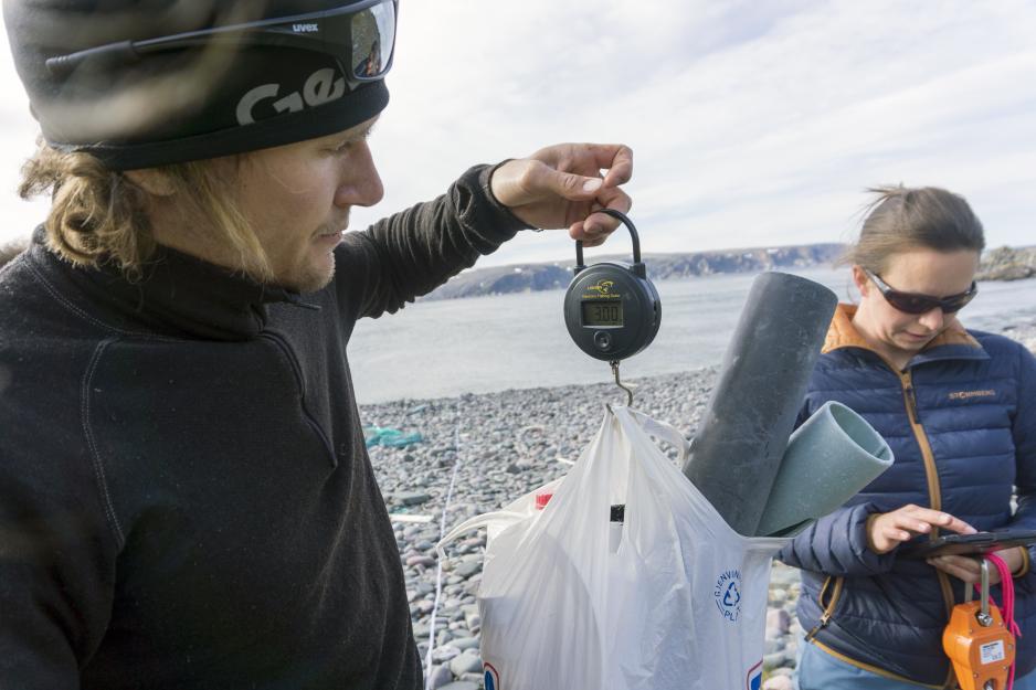 Carl Höjman weights the plastic catch of the day. Marthe Larsen Haarr documents.
