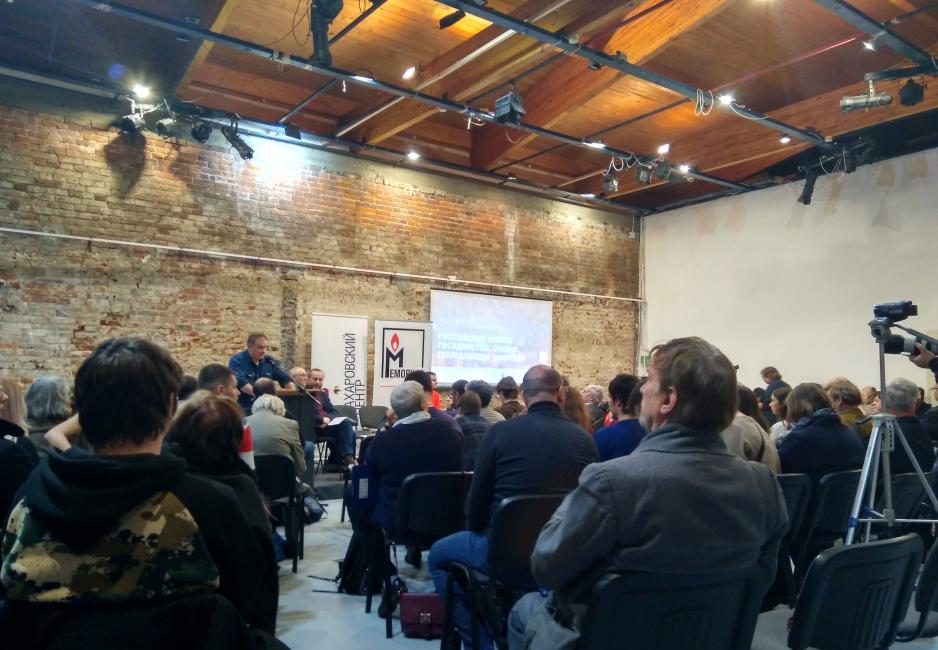 Alexander Cherkasov giving a talk at Sakharov Center, December 15. Photo: Liubov Timonina
