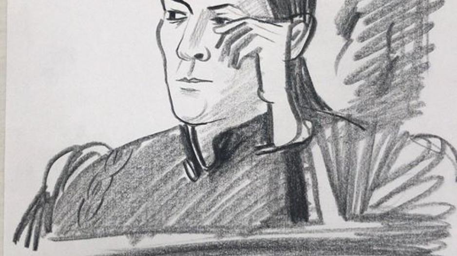 Memorial in court, November 28. Drawing by Maria Berezina.