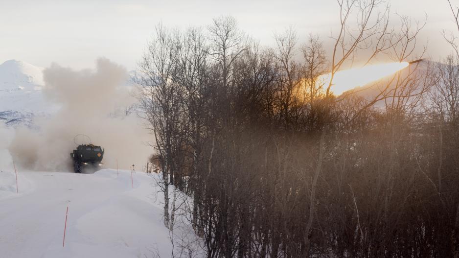 At Sennalandet in Western Finnmark, US Marine Corps personnel gave President Stubb and PM Støre a demonstration of HIMARS – an American mobile rocket artillery system with long-range precision fire of up to 30 miles. Illustration photo from the US Marine Corps’ training with HIMARS at Setermoen, Northern Norway, in February in the build-up to Nordic Response. (Photo: Joshua Kumakaw/the US Marine Corps)