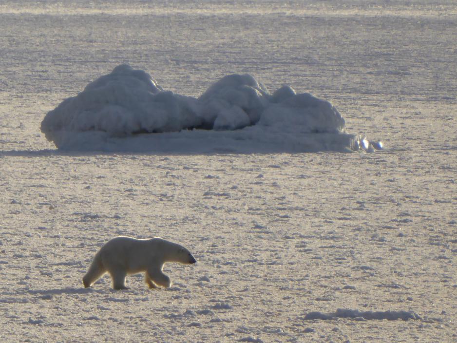 Lone polar bear in Svalbard searching for food. Photo: Marry K. Waal Sandstå, NVP (Norwegian Scientific Academy for Polar Research)