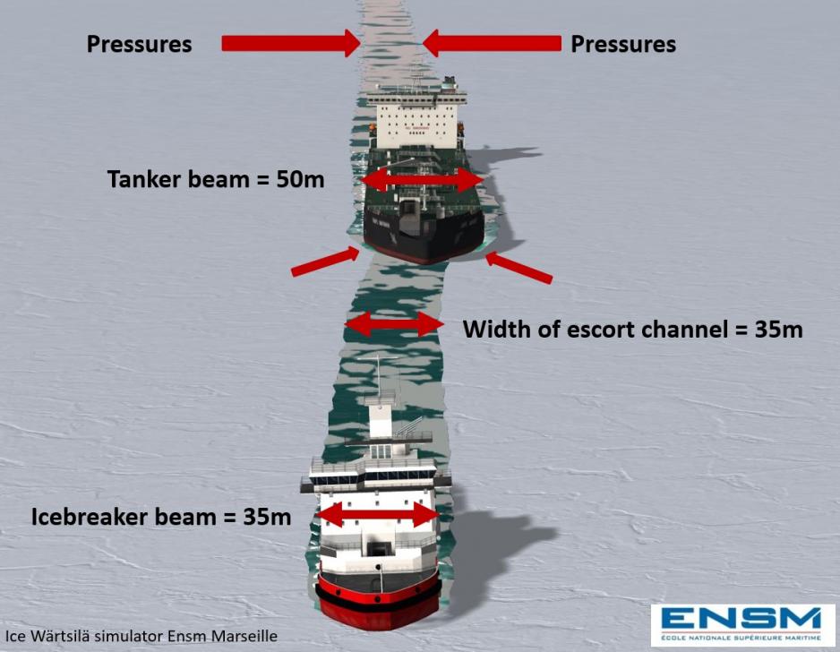 “The escorted ship's progress is slowed down by the pressure of ice along the hull. The Arc7 carriers, which are wider than the icebreaker, must be fast enough to move through the channel and fight the pressure but also the friction of the ice along the hull. This increases fuel consumption,” details Baudu.