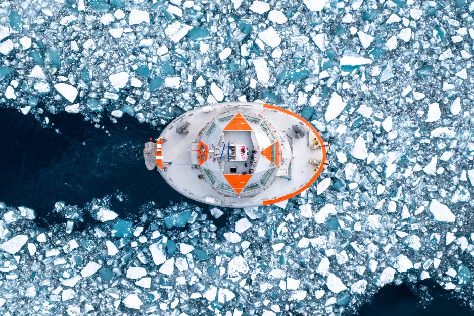 The research vessel Polarstern led the way in the Arctic Ocean. (Photo: Maéva Bardy - Fondation Tara Ocean)