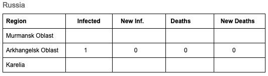 High North News provides daily updates on the spreading of the coronavirus in the Arctic. In Russia, 54 new cases of infection were reported in the last 24 hours. The first death due to coronavirus has been confirmed in Moscow.