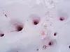 Chlamydomonas nivalis, more commonly known as red, pink, or watermelon snow, is a cold loving species of green algae with red pigments. As they bloom, their red pigmentation substantially darkens the surface of glacial ice and snow. The darker color of the ice changes the amount of light reflected off its surface, melting it at a much faster rate than clean white ice.