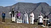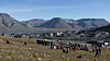Sokneprest Siv Limstrand kjem først i følgjet over tundraen i den gylne augustsola. Ho stoppar like ved tomta der Longyearbyens første kyrkje sto. Høgare makter har naturleg nok lagt alt til rette denne laurdagen. Regnet har teke seg ein pausedag, vinden òg. Til og med teknikken fungerer under den blå himmelen.