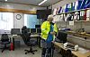 – Her har eg aldri før gått med sko, det har alltid vore reint, seier han før han trakkar sporet vidare inn i pauserommet og til kontrollrommet der skjermar framleis står på rad og rekke