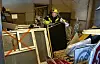 Hit køyrer Darris og Furulund gjenstandane som skal takast vare på frå snikkarverkstaden