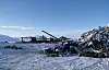 Kraftstasjonen ligg like nedanfor, på den andre sida av flystripa. Den gule maskinisthytta skal flyttast og nyttast som fritidshytte for Store Norske-tilsette.