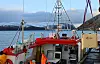 Lerøy-anlegget belager seg på råstoff fra en variert flåte. En av disse er fiskebåten "Tinder", som kommer kjørende inn fjorden mens vi prater på kaia.