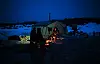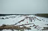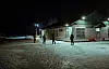 Sortkledde menn med finlandshetter og lange batonger følger oss med falkeblikk når vi nærmer oss. Den nedlagte togstasjonen i Sjies er nå omgjort til et industriområde, med helikopterlandingsplass, depot, stor oppstillingsplass for kjøretøy og eget hønsehus.