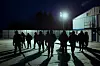 Utenfor brakkeriggen for anleggsarbeiderne er det satt opp to fotballmål. Arbeiderne her har ikke hatt mye å gjøre etter at aktivistene startet sin blokade av området. Noen har dratt hjem, andre vandrer hvileløst rundt med en spade slengt over skulderen.