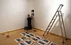 To dagar før utstillinga opna, smaug lukta av måling seg inn på felleskjøkenet i kunstnarsenteret der underteikna sjølv leiger kontorplass. Den kom frå utstillingslokala innanfor. Sergei hadde teikna opp eit rektangel på veggen. No drog han ein brei pensel langs den øvre delen av rektangelet og farga den blå. På golvet stod ein blank boks med gult i.