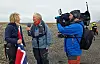 NRK-journalist Helge Lyngmoe, HNN-redaktør Arne O. Holm og kameramann Steinar Lothe på båttur.