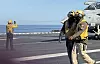 Noen av jagerflyene flyr ut av syne, noen flyr sammen over skipet, mens andre setter kursen mot flydekket for å gjennomføre en av de vanskeligste manøvrene som finnes innenfor luftfart; nemlig det å lande på et hangarskip.