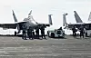Enda en F-18 beveger seg mot rullebanen og er straks i luften sammen med de andre.