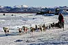 Unalakleet/Shaktoolik/Koyuk, Alaska: Joar Leifseth Ulsom har en isende vind i ryggen mens han langs kysten av Beringsstredet avanserer og for øyeblikket er den raskeste norske hundekjøreren i Iditarod. Slitne hunder og kjørere nærmer seg målet Nome i Alaska.