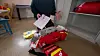 Tilhenger med brannpumpe, ATV og brannslanger.
