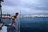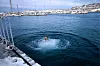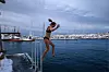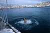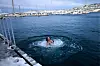 Siv Gyda tar sats og hopper ut i havet.Linn Ophaug