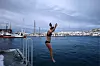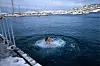 Siv Gyda åpner døra mot kulda, og hopper ut i det iskalde havet.