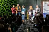 Thorvald Stoltenbergs pris ble tatt imot av (f.v.) Neal Cahoon, Evgenij Goman og Franziska Kraiczy i Pikene på Broen, samt Bente Andersen og Rune Sundelin i Samovarteateret på Kirkeneskonferansen onsdag. Prisen består av en byste og et stipend på 20.000 kroner.