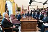 USAs president Donald Trump møtte Kinas visestatsminister Liu He i Det hvite hus i Washington 4. april i forbindelse med forhandlinger om handelsavtaler mellom landene.
