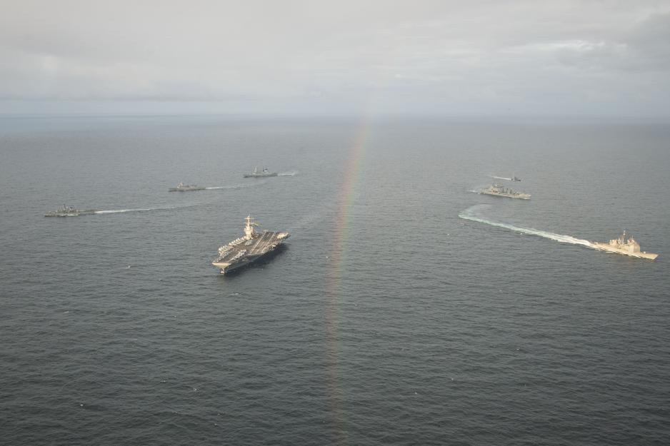 Gruppen inkluderer missilkrysseren USS Normandy, destroyerne USS Ramage og USS Thomas Hudner, og muligens også ubåter.