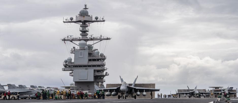 Disse har dannet «en beskyttende stålring» rundt USS Gerald R. Ford, skriver den britiske marinen.