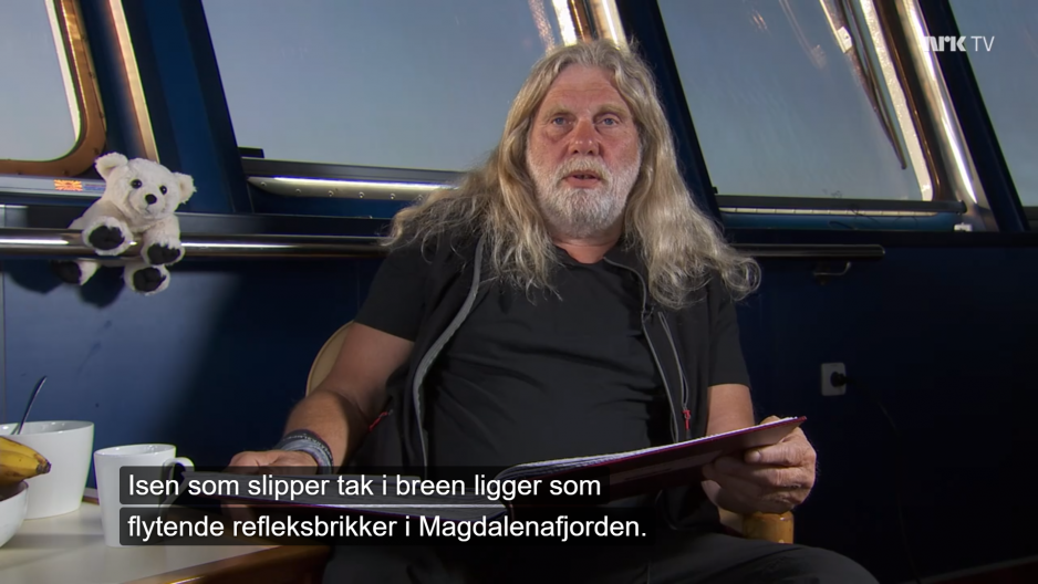 Sjefredaktør i High North News, Arne O. Holm, er kjentmann og guide om bord på MS Spitsbergen. Hver kveld oppsummerer han dagen slik han har opplevd den. Arnes logg har skapt stort engasjement i sosiale medier. Skjermbilde fra NRK.