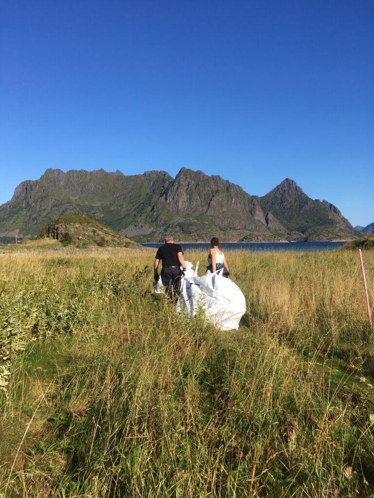 Store megnder søppel skjulte seg bak en fin lofotfasade da ProofClean og Kriss Rokkan Iversen ryddet søppel i strandsonen. (Foto: Privat)