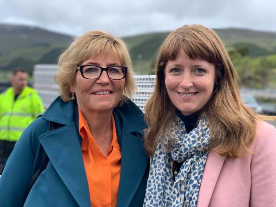 Fylkesråd for næring Ingelin Noresjø (t.h.) la ned grunnsteinen til Calanus' pilotanlegg for bioraffinering av raudåte på Sorltand. Sortland-ordfører Tove Mette Bjørkmo til venstre. (Foto: Ingelin Noresjø, med tillatelse)