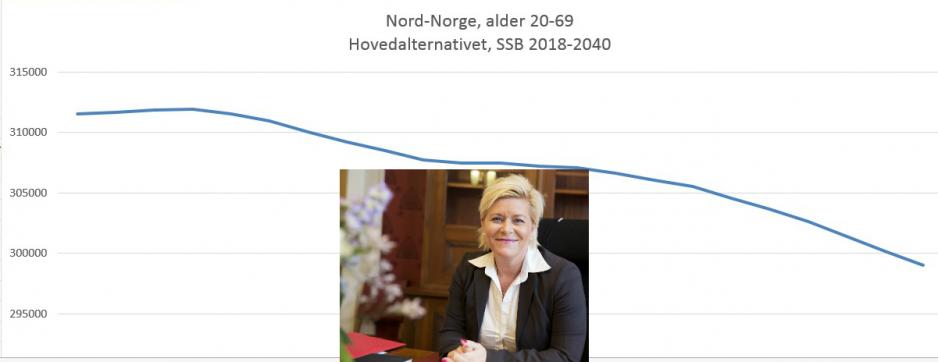 Samtidig har vi fått ferske tall fra Statistisk Sentralbyrå som viser at den yrkesaktive delen av befolkningen i Nord-Norge synker som, om ikke en stein, så i alle fall et akselererende tempo.