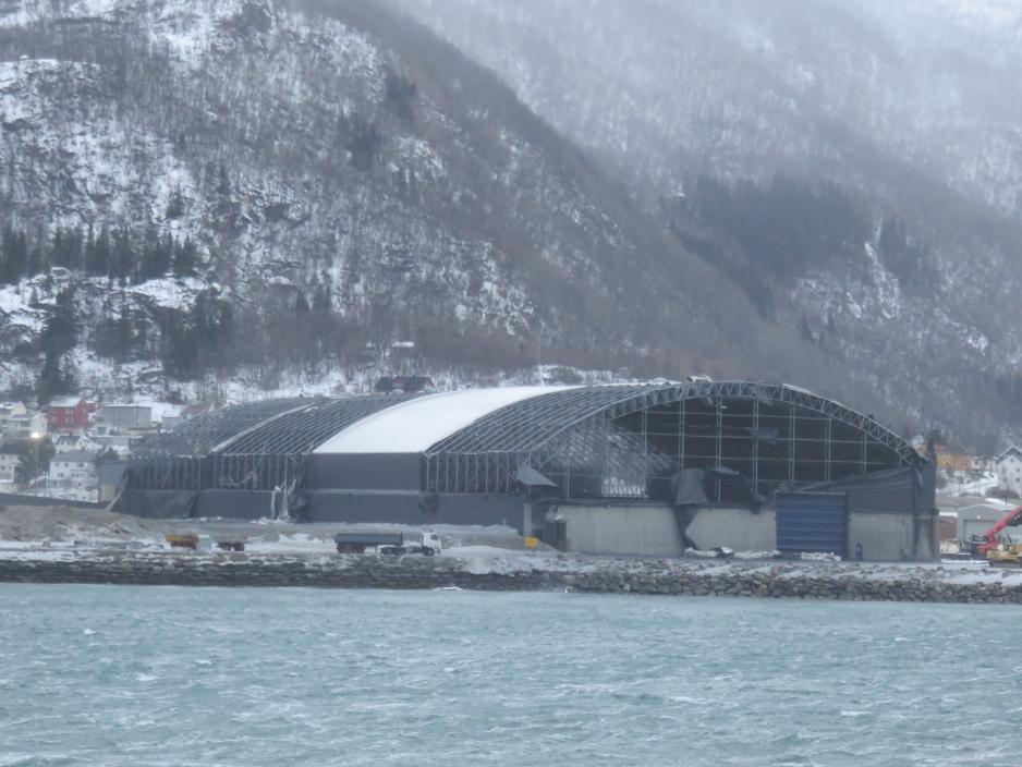 Lageret til Northland fikk store skader under under stormen 29. januar i år. Nå overtas det av Narvik Havn KF. (Foto: TorbjørnS/Wikimedia)