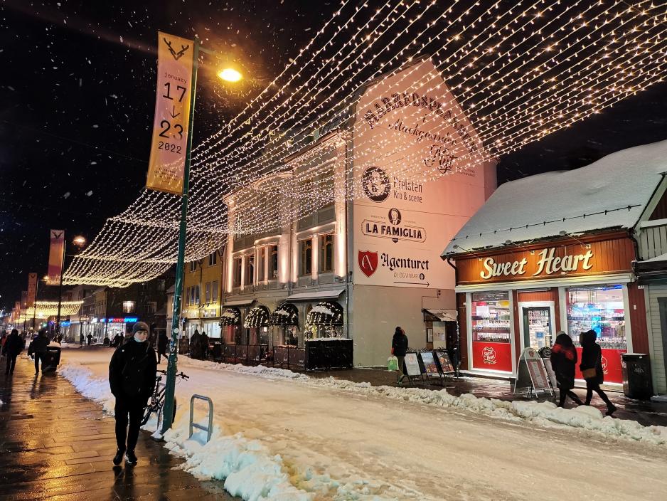 – Å, se her er det jo utekino! lyder det på kav østlandsk – fra en tilreisende som tydelig er førstereis til byen når den er ikledt sin vinterlige festivaldrakt.