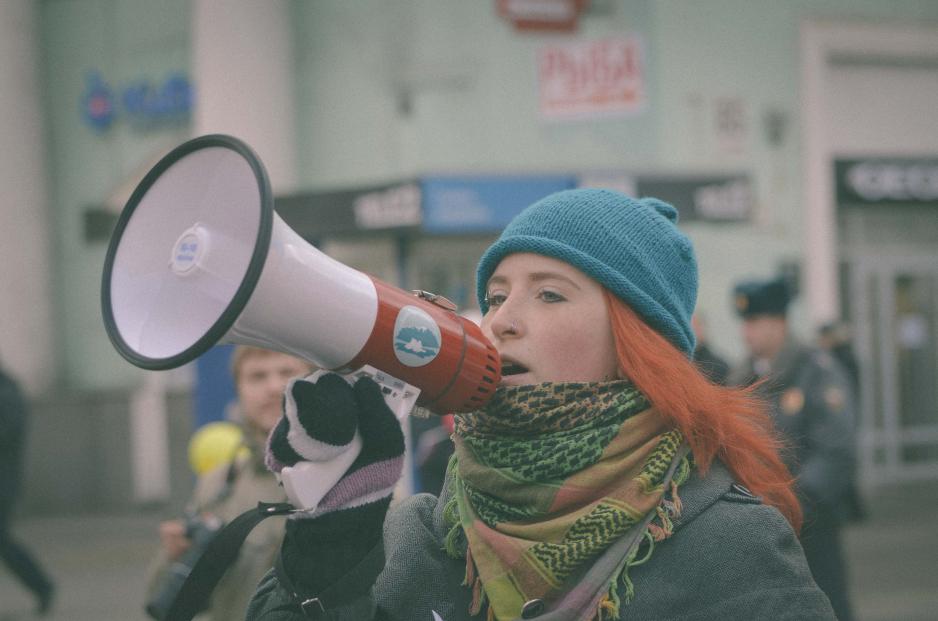 Tatiana Kulbakina fra Murmansk mener hun ble nektet å arrangere en demonstrasjon til støtte for de fengslede bandmedlemmene av Pussy Riot i 2012. Her fra en annen demonstrasjon. Foto: Vkontakte.ru
