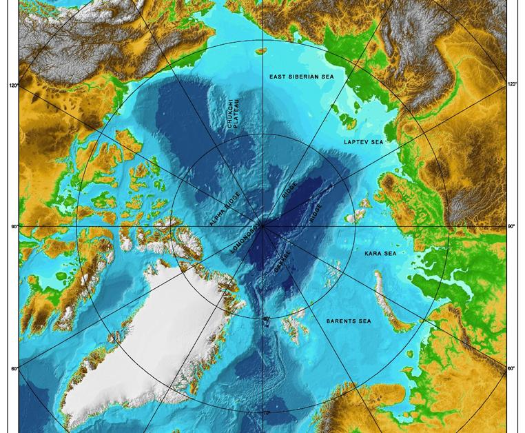 The Lomonosov Ridge, the dark blue area stretching across the North Pole, is the source to both Russian and Danish claims to ‘own’ the North Pole. (Photo: The National Oceanic and Atmospheric Administration/http://www.ngdc.noaa.gov/mgg/image/IBCAO_betamap.jpg)