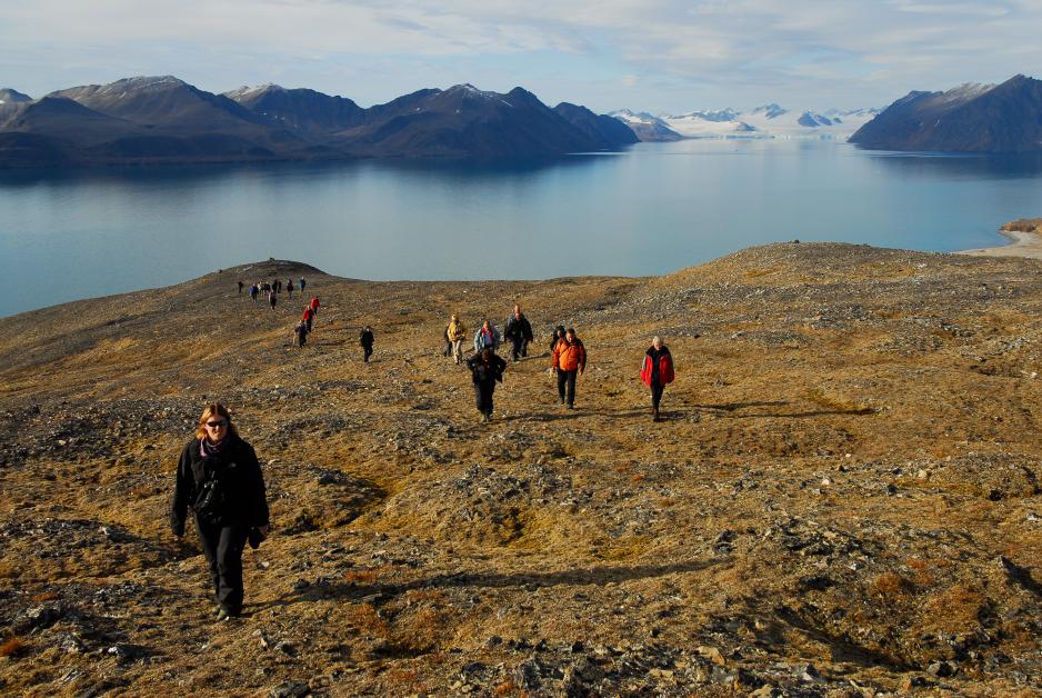 Både folk og nasjonaløkonomi står stødigere med flere bein å stå på. Her en gruppe fotfolk på turi Krossfjorden på vestsiden av Spitsbergen. (Foto: Peter Prokosch/Grid Arendal)