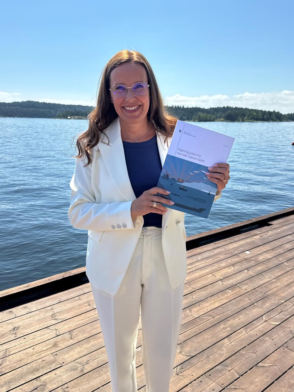 Fiskeri- og havminister Marianne Sivertsen Næss har lansert regjeringens næringsplan for norske havområder. Planen inneholder ti overordnede prinsipper for forvaltning av arealbruk til havs. (Foto: Nærings- og fiskeridepartementet).