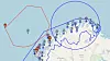- Et sirkelformet fareområde i havet med midtpunkt vest for Brønnøysund, Sør-Helgeland – 6. til 8. juni. (Det overlappende sirkelformede fareområdet mot sør har midtpunkt vest for Nærøysund kommune, Trøndelag, og gjelder samme tidsrom)